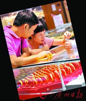 而六×珠寶的銷售人員告訴想“以舊換新”的記者說,要以舊換新,需按大于舊金的30%補(bǔ)差價(jià)。最后,銷售人員告訴記者,按10克舊金算,市民要“以舊換新”最少要補(bǔ)2500多元差價(jià)。