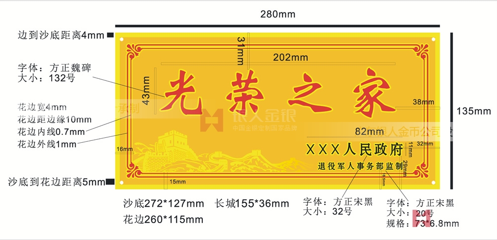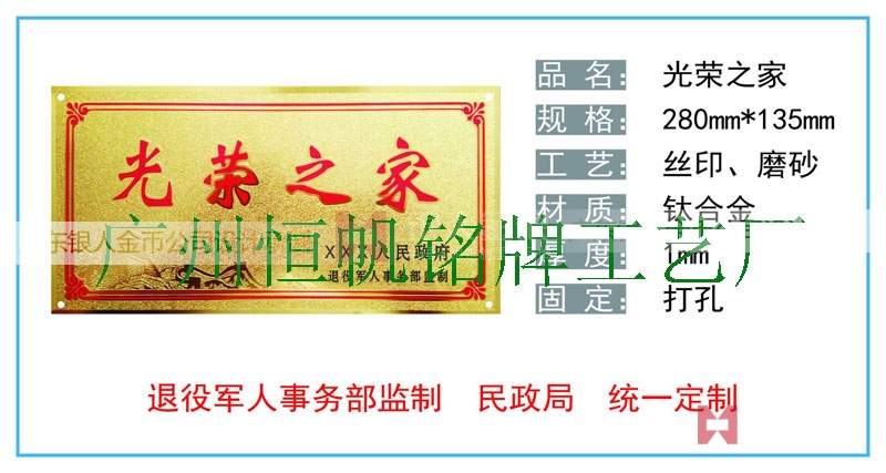 退役軍人事務部/政府部門民政廳統(tǒng)一懸掛安裝光榮之家牌匾/光榮牌制作標準規(guī)格尺寸技術參數(shù)生產(chǎn)廠家