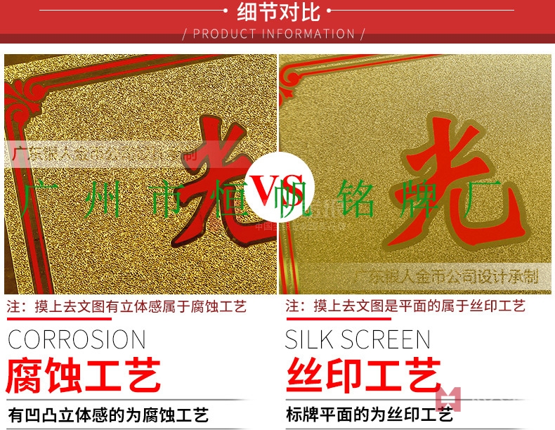 1 | 光榮牌一般要求 | 光榮牌應表面鍍氮化鈦,底色為金黃色、沙底鍍金,同顏色的區(qū)域內顏色應均勻一致,在照度500lx以上的自然光(或D62光源、C光源、A光源)下與標準色板比較,肉眼觀察應無明顯色差 標牌的周邊不應有明顯的毛刺和齒形及波形 正面應平整光潔,邊框線應勻稱,光滑、連續(xù),不斷裂 文字、符號的大小和線條粗細應整齊醒目,排列均勻,不應斷缺和模糊不清 表面不應有裂紋和明顯的擦傷絲紋以及有影響其清晰的銹斑、斑點、暗影,涂鍍層不應有氣孔、泡、霧狀、污跡、皺紋、剝落或剝落跡象和明顯的顆粒雜質 粘貼標牌不應出現(xiàn)折痕、皺紋、自卷撕裂和粘貼劑滲出等現(xiàn)象 標牌的顏色應清晰醒目、色澤均勻,不應有泛色 兩種及兩種以上顏色套印的標牌,色彩間邊緣應整齊、清晰,兩色相接處不應有間隙 |