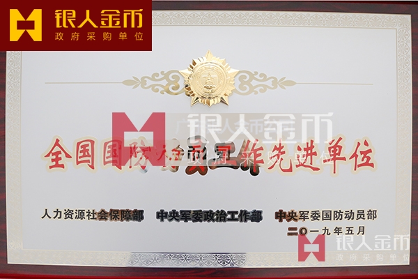 中央軍委政治工作部、中央軍委國防動員部、國務院人力資源和社會保障部頒發(fā)全國國防動員工作先進單位獎牌牌匾