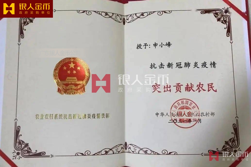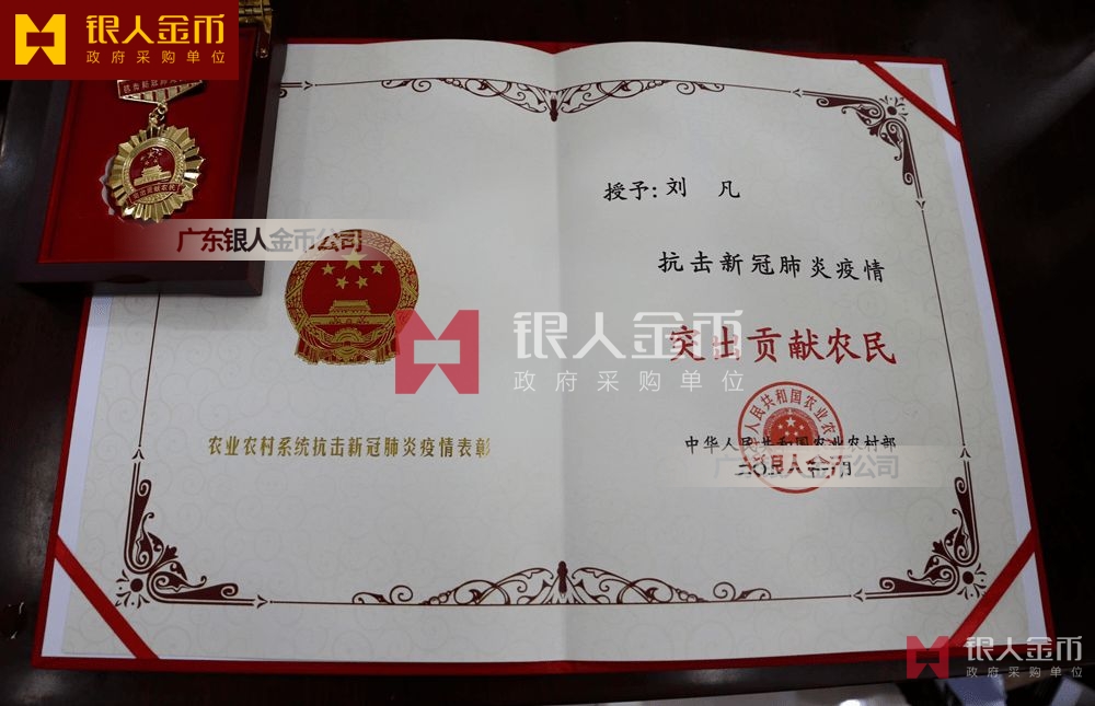 農(nóng)村農(nóng)業(yè)部抗擊新冠肺炎疫情先進(jìn)個人突出貢獻(xiàn)農(nóng)民稱號獎牌獎?wù)伦C書(圖)