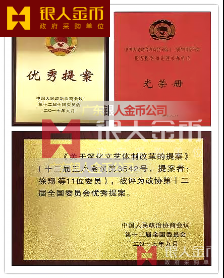 除此之外,還是重要證章和金銀幣文化產(chǎn)品的制造者,比如黨員徽章、黨徽、體育賽事運會獎牌、黨政單位授予獎牌、部分授權(quán)委托生產(chǎn)、設(shè)計、定制國家級榮譽獎?wù)录凹o念章等通俗來講,廣東銀人金幣公司不僅可以造章(包括金銀章、紀念章、獎?wù)隆渍拢?;還可以制作各種證章、徽章;比如中共新疆自治區(qū)黨委組織部監(jiān)制中組部標準黨員徽章、中共湖南省委辦公廳監(jiān)制中共中央組織部標準指定定點黨徽、海南省政府外事僑務(wù)辦公室頒授的"國賓接待榮譽酒 店“稱號牌匾獎牌、以褒獎該酒店在博鰲亞洲論壇期間接待國家元首及政府首腦的出色表現(xiàn)。