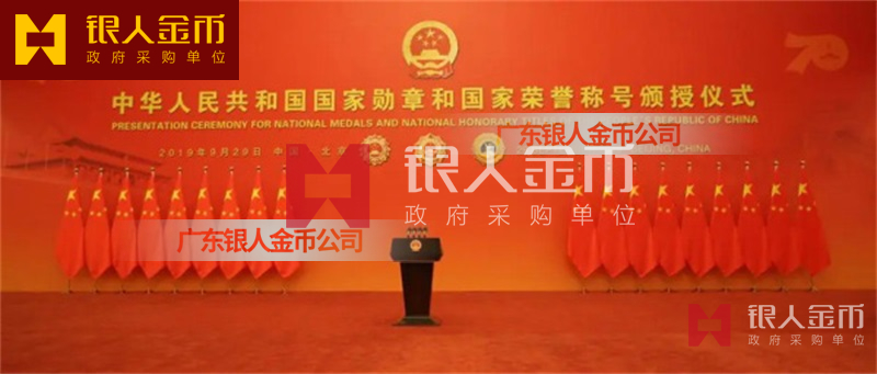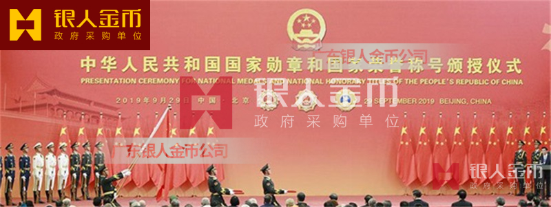 2019年,國慶七十周年之際,中宣部委派中央電視臺授權(quán)廣東銀人金幣公司為國慶70周年紀念章設(shè)計制造單位。過去社會上常常把金幣公司這個行業(yè)稱為“三特”行業(yè),指的是“生產(chǎn)特殊產(chǎn)品的、實行特殊管理的特殊行業(yè)”。