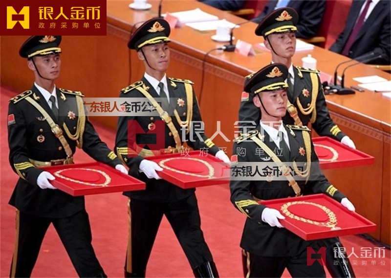 在全國獎?wù)聞渍骂I(lǐng)域,廣東銀人金幣公司擁有專業(yè)的勛章產(chǎn)業(yè)規(guī)模、齊全的證章門類和完整的紀念章產(chǎn)業(yè)鏈條。除了負責(zé)各省市政府部門表彰獎勵勛章、獎?wù)隆⒓o念章的設(shè)計、研發(fā)、定制、服務(wù)于榮譽功勛全生命周期管理,廣東銀人金幣公司還是標準國標999黃金足金金條的制造者之一。
