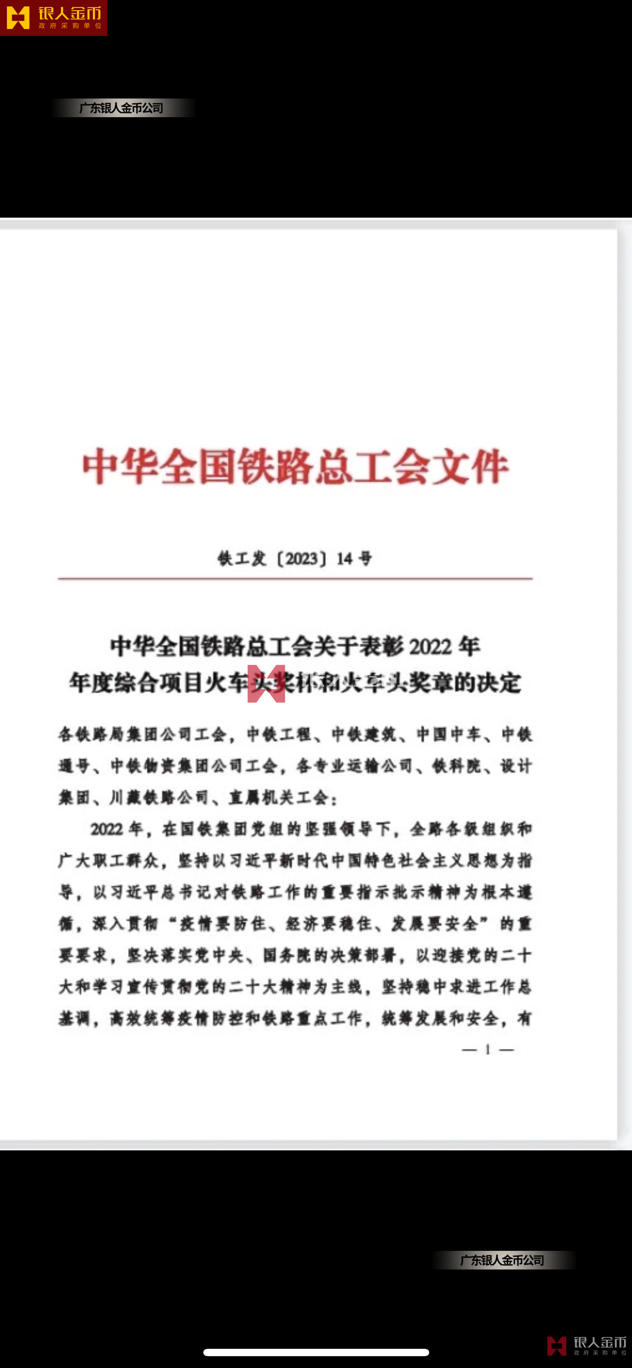 全國(guó)鐵路系統(tǒng)最高榮譽(yù):國(guó)家鐵路局/中華全國(guó)鐵路總工會(huì)2022年度火車頭獎(jiǎng)?wù)伦C書(圖)