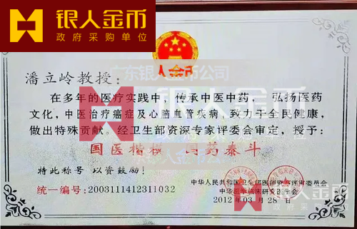 廣東銀人金幣公司經(jīng)中國人民銀行批準,頒發(fā)《經(jīng)營流通人民幣許可證》、國家市場監(jiān)管相關(guān)部門核準。
