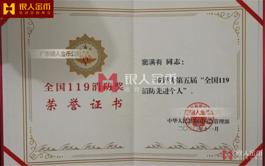 應(yīng)急管理部全國119消防獎全國119消防先進個人獎?wù)伦C書(圖)