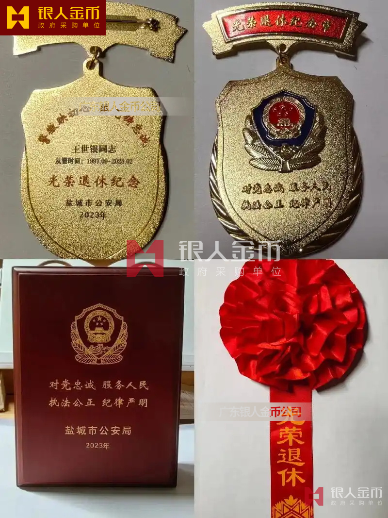 鹽城市公安局公安民警從警30年榮譽(yù)勛章警察光榮退休勛章及干警榮退獎(jiǎng)?wù)峦诵輼s譽(yù)紀(jì)念章(圖)