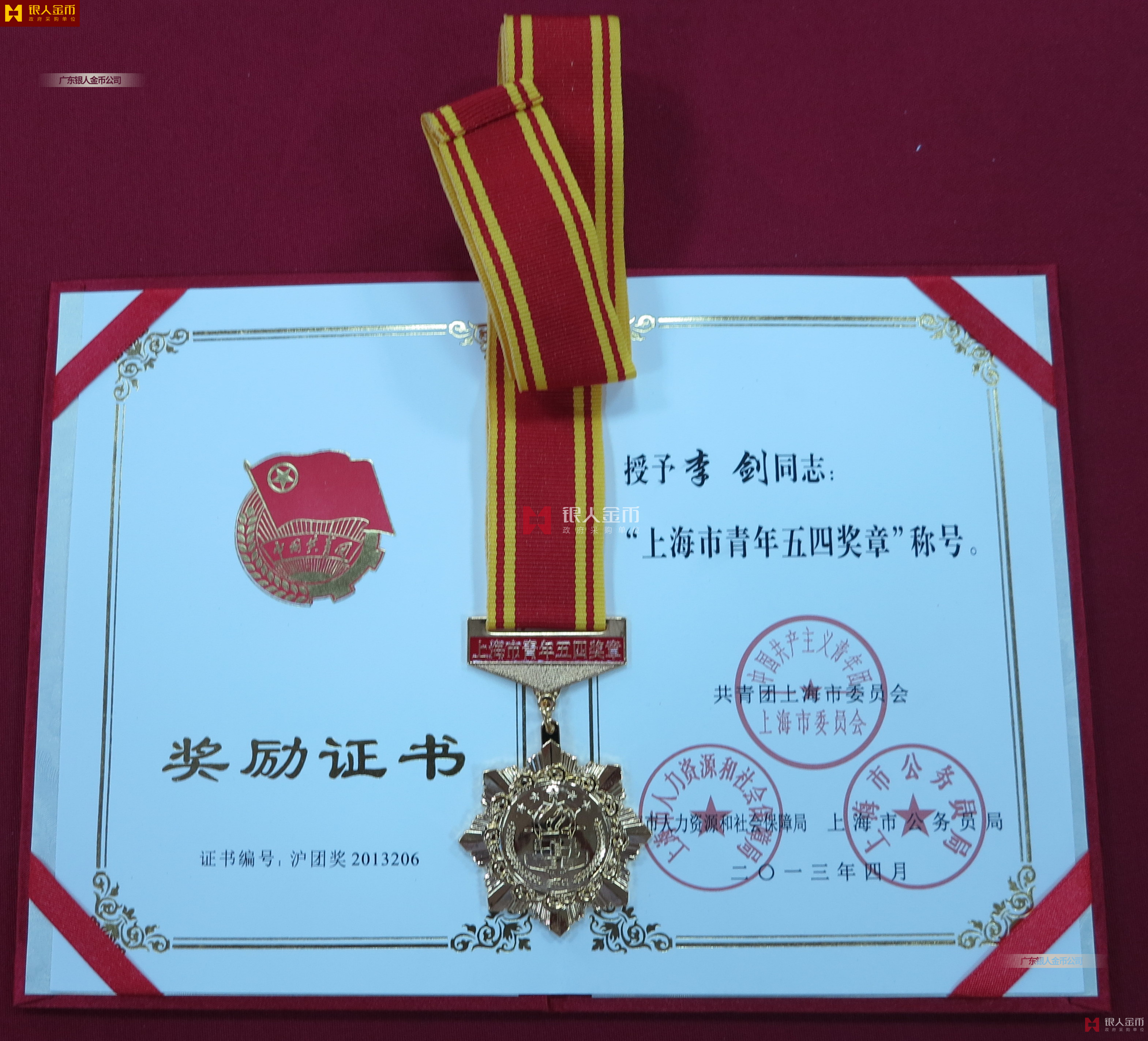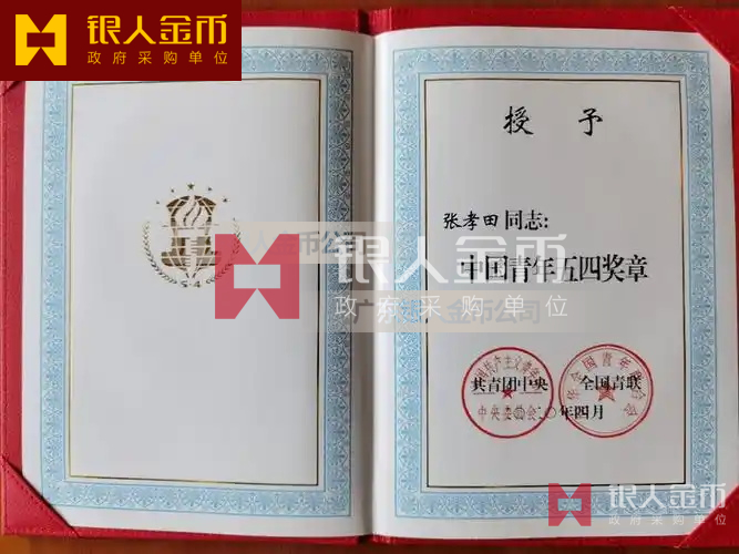共青團(tuán)中央辦公廳 全國(guó)青聯(lián)中國(guó)青年五四獎(jiǎng)?wù)伦C書和中國(guó)青年五四獎(jiǎng)?wù)录w獎(jiǎng)牌證書(圖)