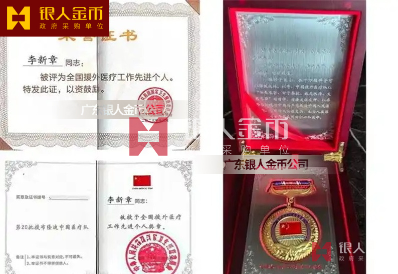 中華人民共和國國家衛(wèi)生健康委員會(原衛(wèi)生部)全國援外醫(yī)療工作先進集體獎牌證書和先進個人獎?wù)录o念章勛章證書(圖)