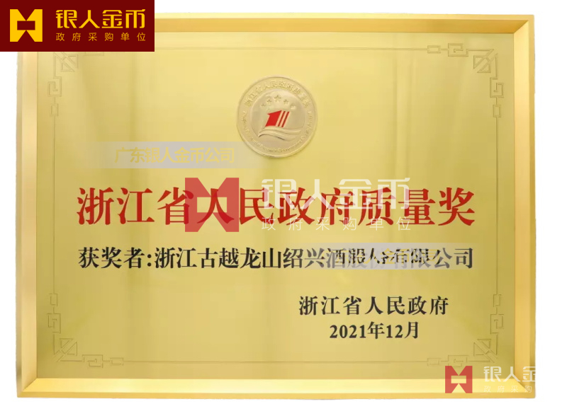 浙江省人民政府頒發(fā)頒授浙江省人民政府質(zhì)量獎(jiǎng)證書獎(jiǎng)牌牌匾銅牌匾額(圖)