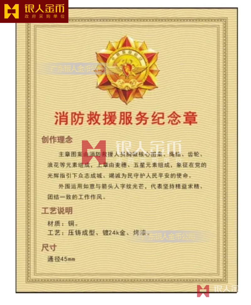 中華人民共和國應急管理部金質銀質銅質消防救援紀念章(干部,消防員,專職,文員)獎章勛章獎牌證書(圖)