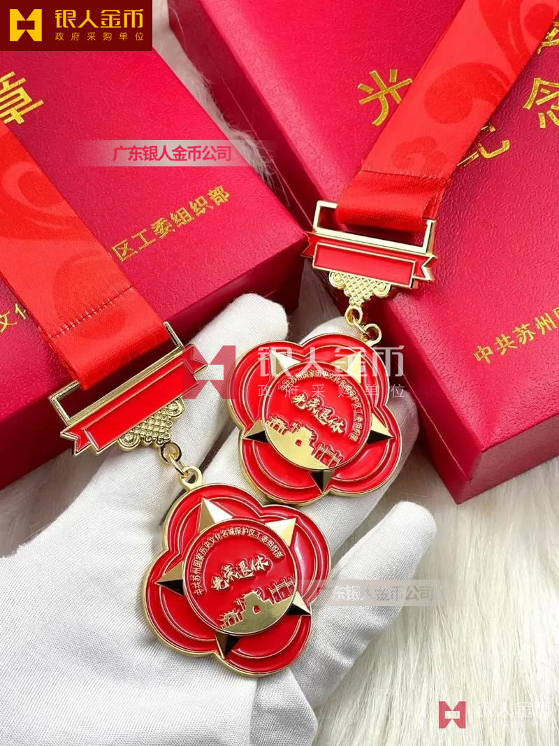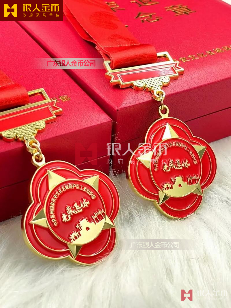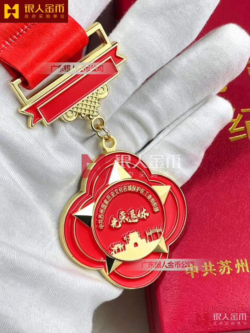 中共蘇州某區(qū)黨工委組織部干部光榮退休紀念章制作定制-【廣州證章生產(chǎn)制造廠家】