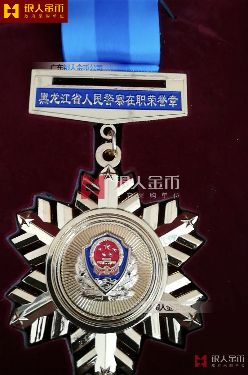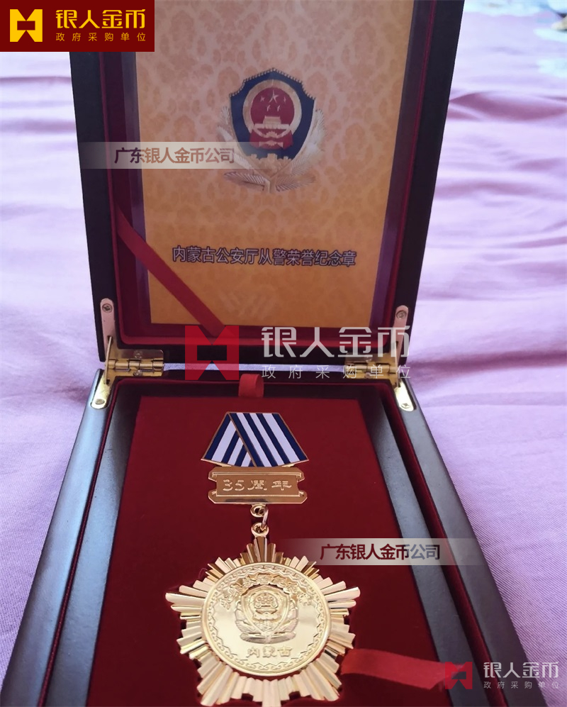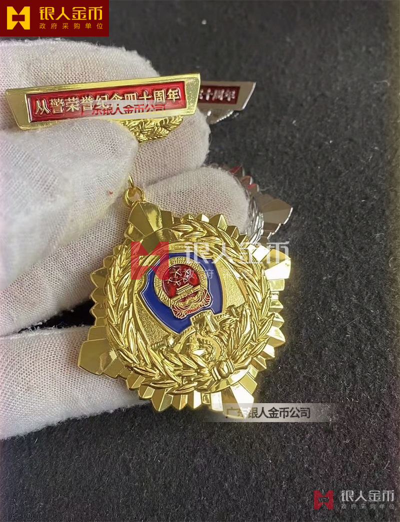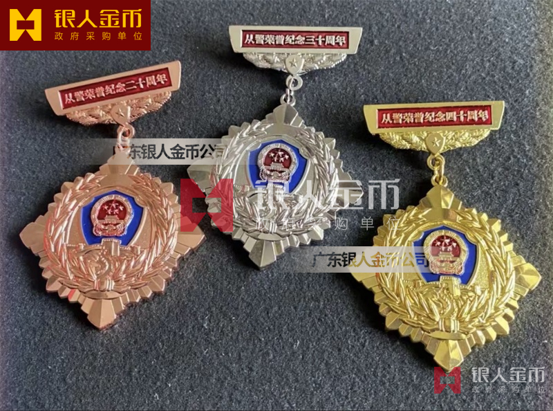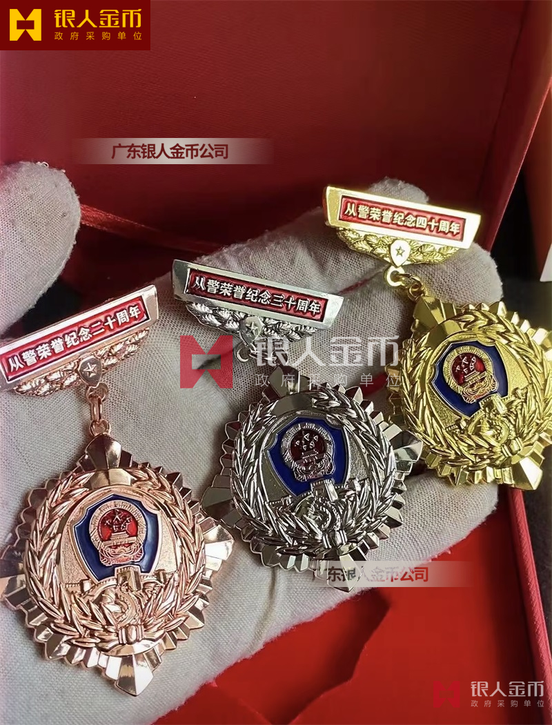 從警紀(jì)念章(公安勛章或警察勛章,也叫人民警察金盾獎(jiǎng)?wù)?/a>或金盾勛章),不僅是一件獎(jiǎng)品,更是一份承載著榮譽(yù)與責(zé)任的象征,它猶如一面鏡子,映射出警察職業(yè)的崇高與莊嚴(yán),也映射出每一位警察內(nèi)心深處的信念與堅(jiān)守。這款從警年限紀(jì)念章以金銀銅三色為主調(diào)分別代表不同入警時(shí)間,象征著警察職業(yè)的莊嚴(yán)與神圣。其造型獨(dú)特,融合了警徽、盾牌與時(shí)間的元素,警徽,代表著警察的身份與榮譽(yù),每一次佩戴,都是對(duì)職責(zé)的堅(jiān)守;盾牌,象征著保護(hù)與守護(hù),是警察們面對(duì)危險(xiǎn)時(shí)無(wú)畏前行的勇氣;而時(shí)間的流轉(zhuǎn),則見證了警察們從青澀到成熟,從熱血到沉穩(wěn)的蛻變。