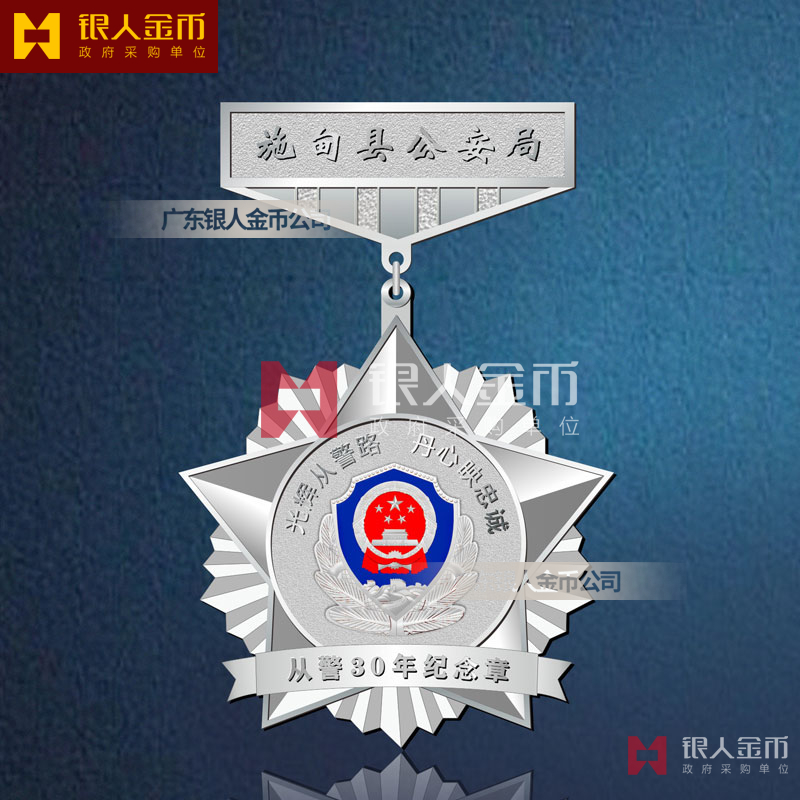 • 從警 30 年:銀質(zhì),工藝升級(jí),搭配專(zhuān)屬綬帶,紀(jì)念三十年從警生涯。