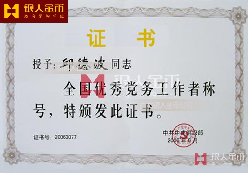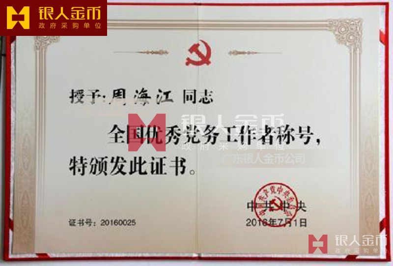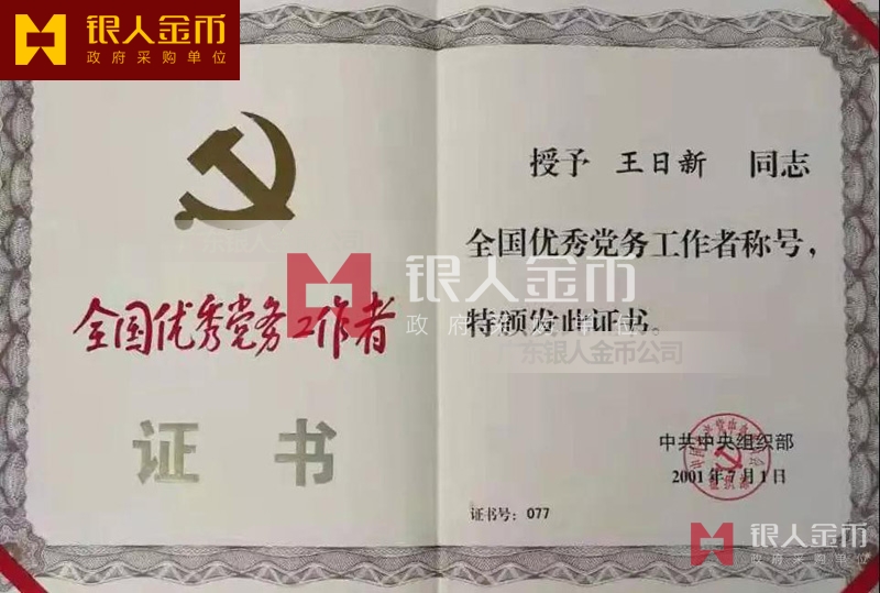 中共中央/中組部2020年“全國優(yōu)秀黨務工作者”稱號獎章、獎牌、證書(實物)
