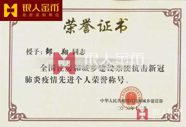 中華人民共和國住房和城鄉(xiāng)建設(shè)部抗擊疫情先進(jìn)集體個人獎牌證書(圖)