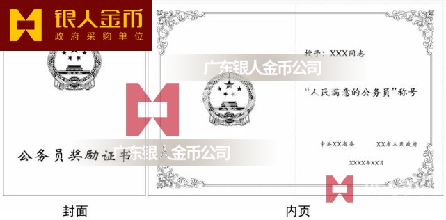 公務員、公務員集體的獎勵證書、獎章和獎牌,按照規(guī)定的式樣、規(guī)格、質地,由省級以上公務員主管部門統(tǒng)一制作或者監(jiān)制。