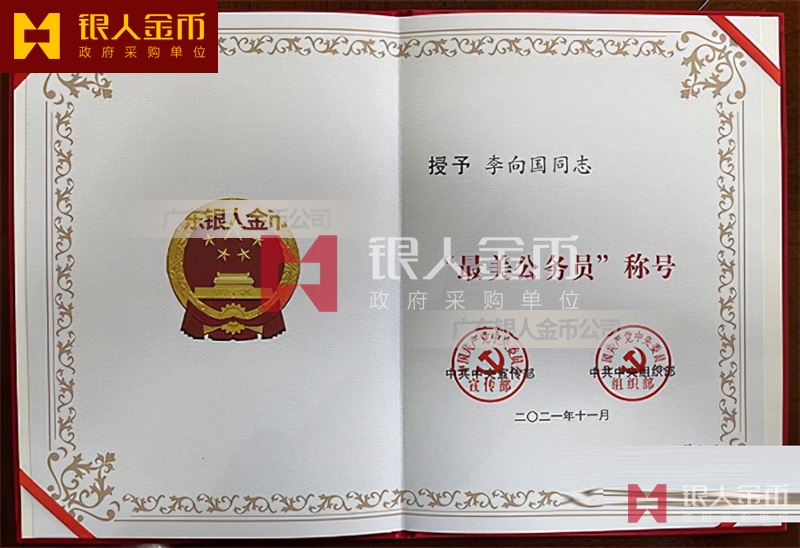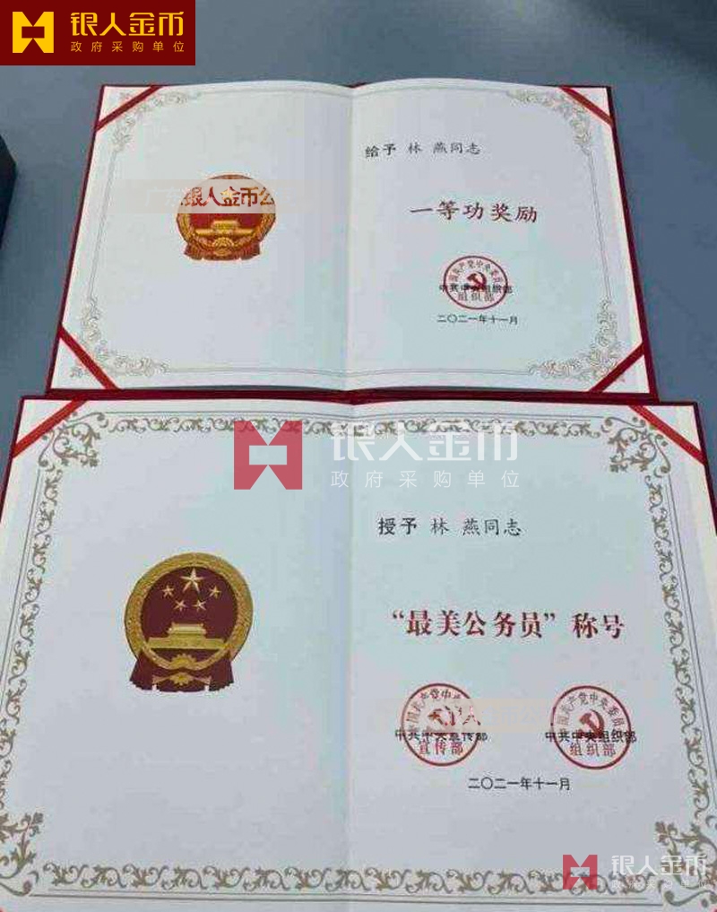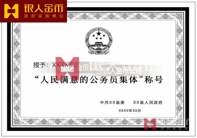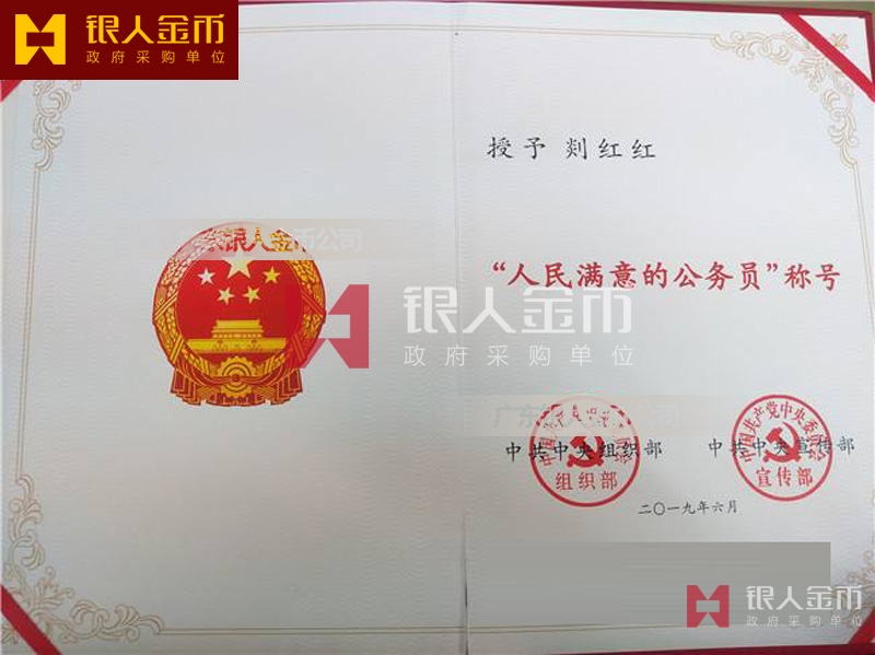 最新!中共中央組織部人民滿意的公務員稱號獎牌獎章獎勵證書/榮譽證書