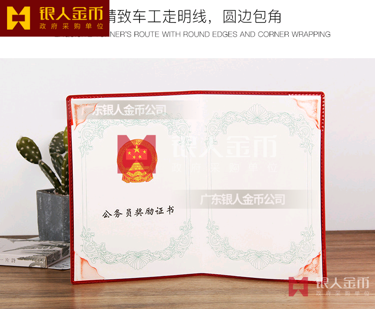 本證書適用于對公務員、公務員集體的獎勵。證書規(guī)格為410×290毫米(展開)。封面選用國旗紅色絲綢材料,燙金印制國徽圖案及“公務員獎勵證書”字樣,字體為魏碑,54號字,