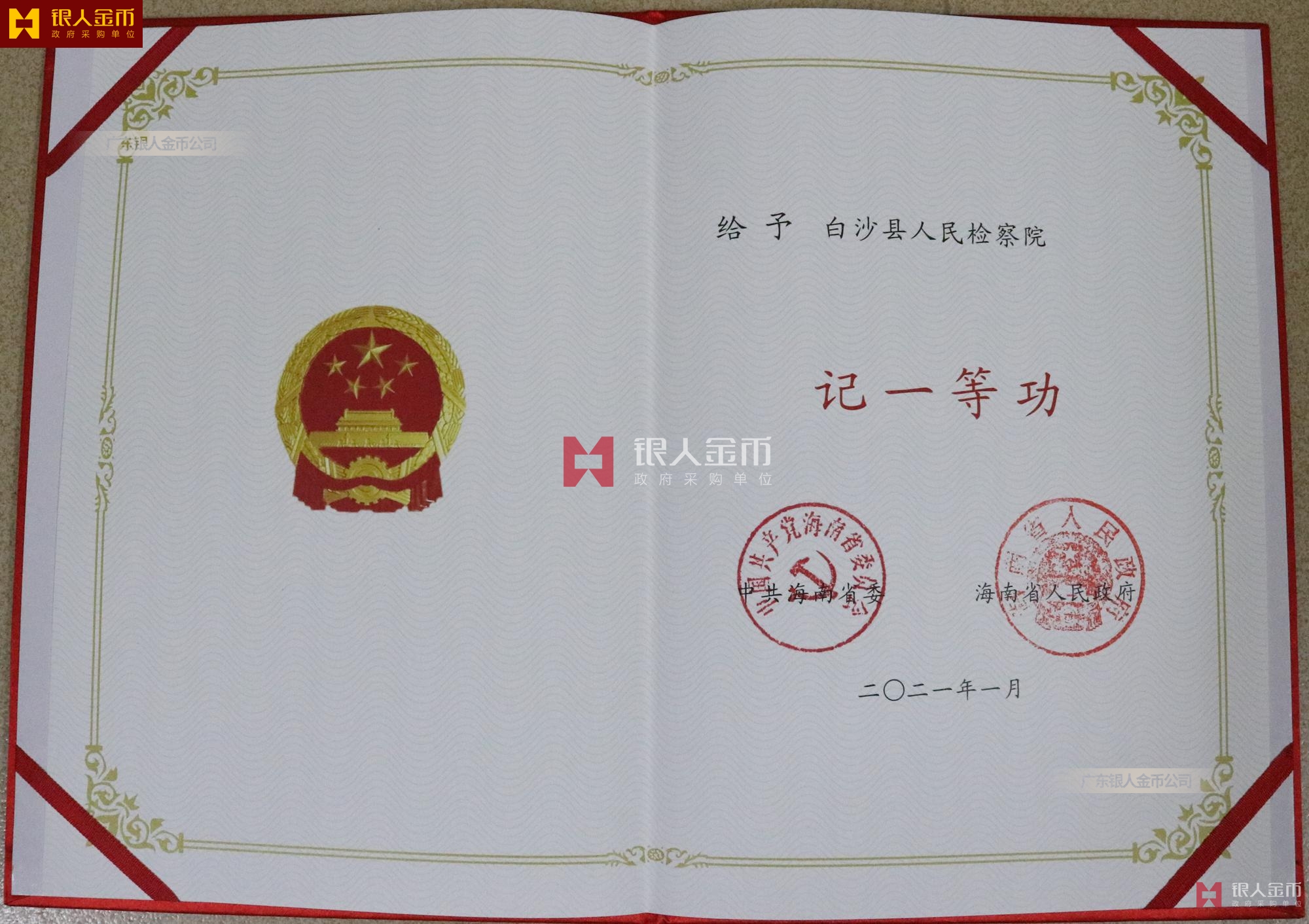 規(guī)格為430×270毫米,正中上方為一枚金屬材質國徽,規(guī)格為75×80毫米;左上部分為獲獎單位名稱,中間部分為受到何種獎勵,右下部分為頒獎單位名稱和頒獎日期。