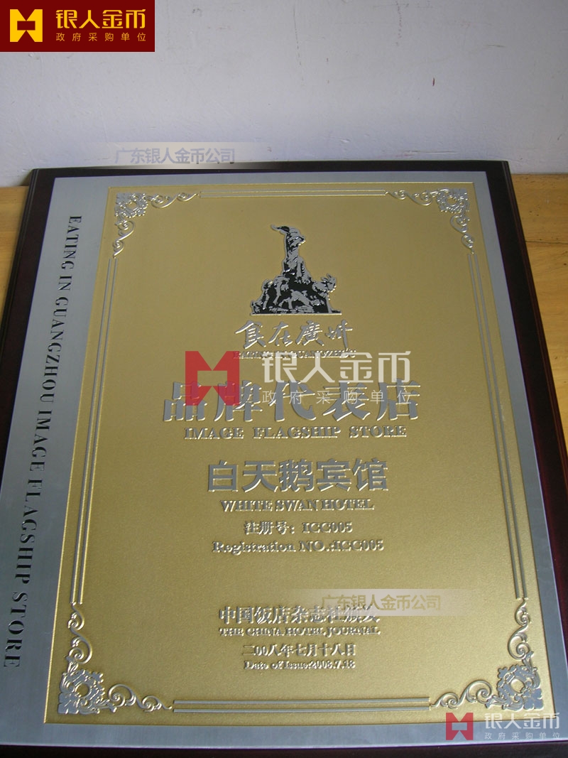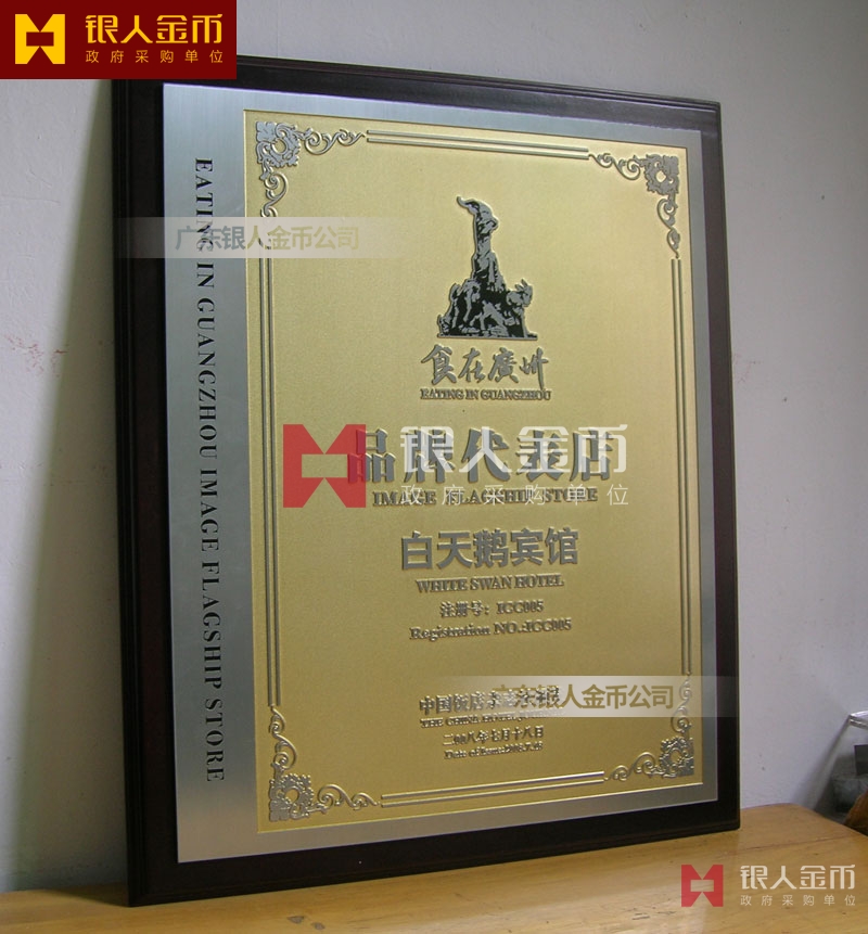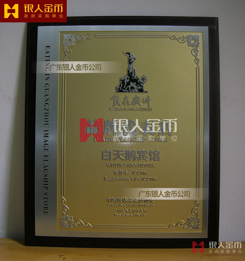 中國(guó)飯店雜志社頒發(fā)食在廣州白天鵝酒店星級(jí)高檔高級(jí)牌匾獎(jiǎng)牌招牌匾額(圖)