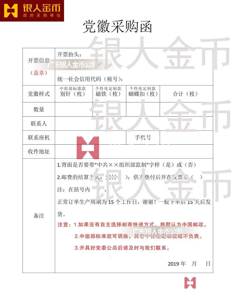 組織部確定的生產(chǎn)制作、銷售購買、定制采購黨員徽章生產(chǎn)廠家和黨徽正規(guī)購買渠道與訂制廠商。黨徽采購函模板樣式式樣圖樣圖案圖稿文檔文稿表格單據(jù)文件。