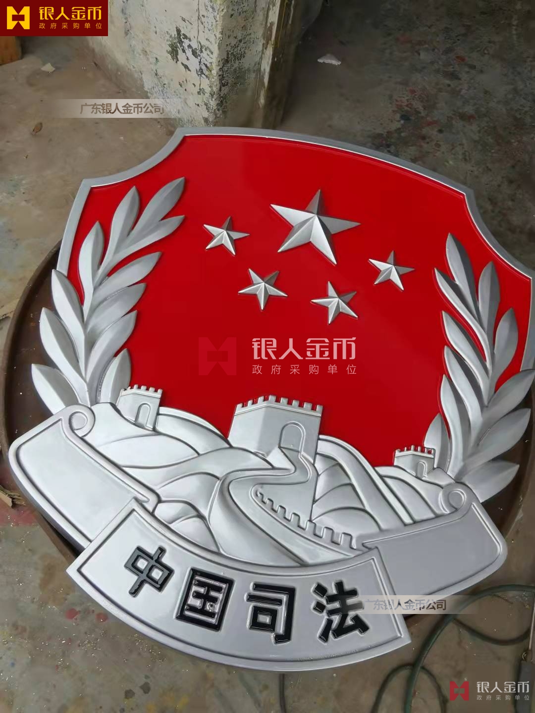 大型戶外大樓室內禮堂懸掛人大政協(xié)會徽軍警稅務司法工會交通安監(jiān)質監(jiān)檢疫法院檢察院徽標生產定制制造【廣州銀人徽章廠制作公司】