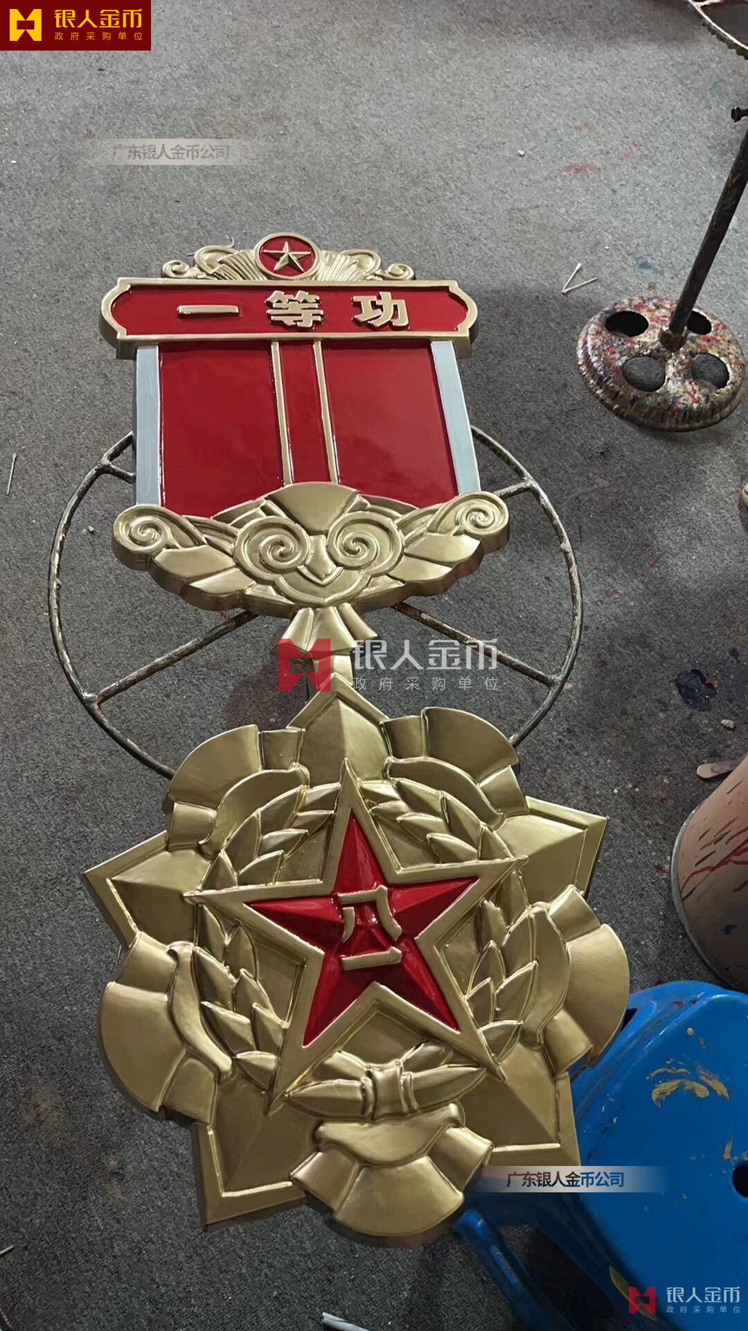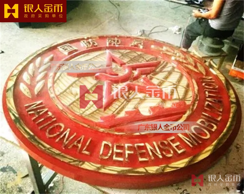 政府部隊(duì)?wèi)?zhàn)區(qū)機(jī)關(guān)大樓門(mén)頭禮堂戶外室內(nèi)外懸掛大型國(guó)徽黨徽八一軍徽警徽政協(xié)徽生產(chǎn)制作定制(圖)【廣州徽章廠制作公司】