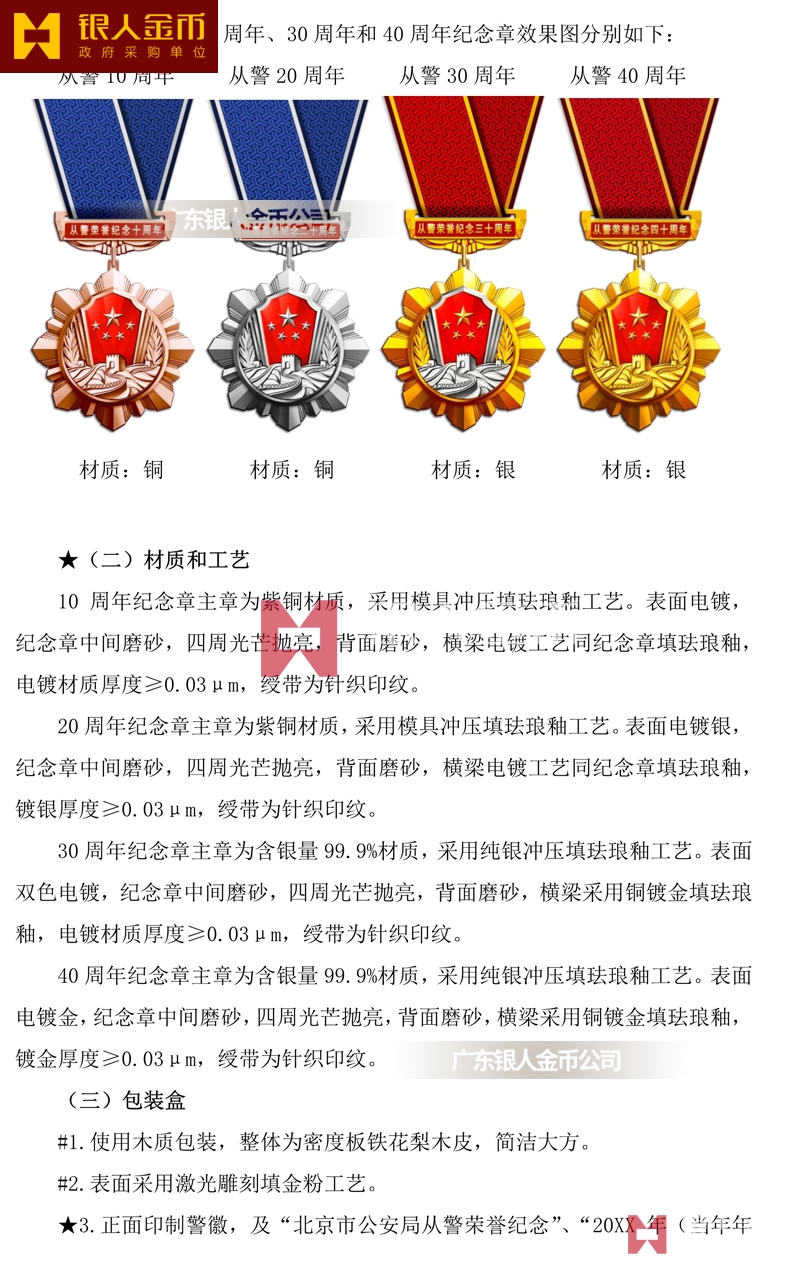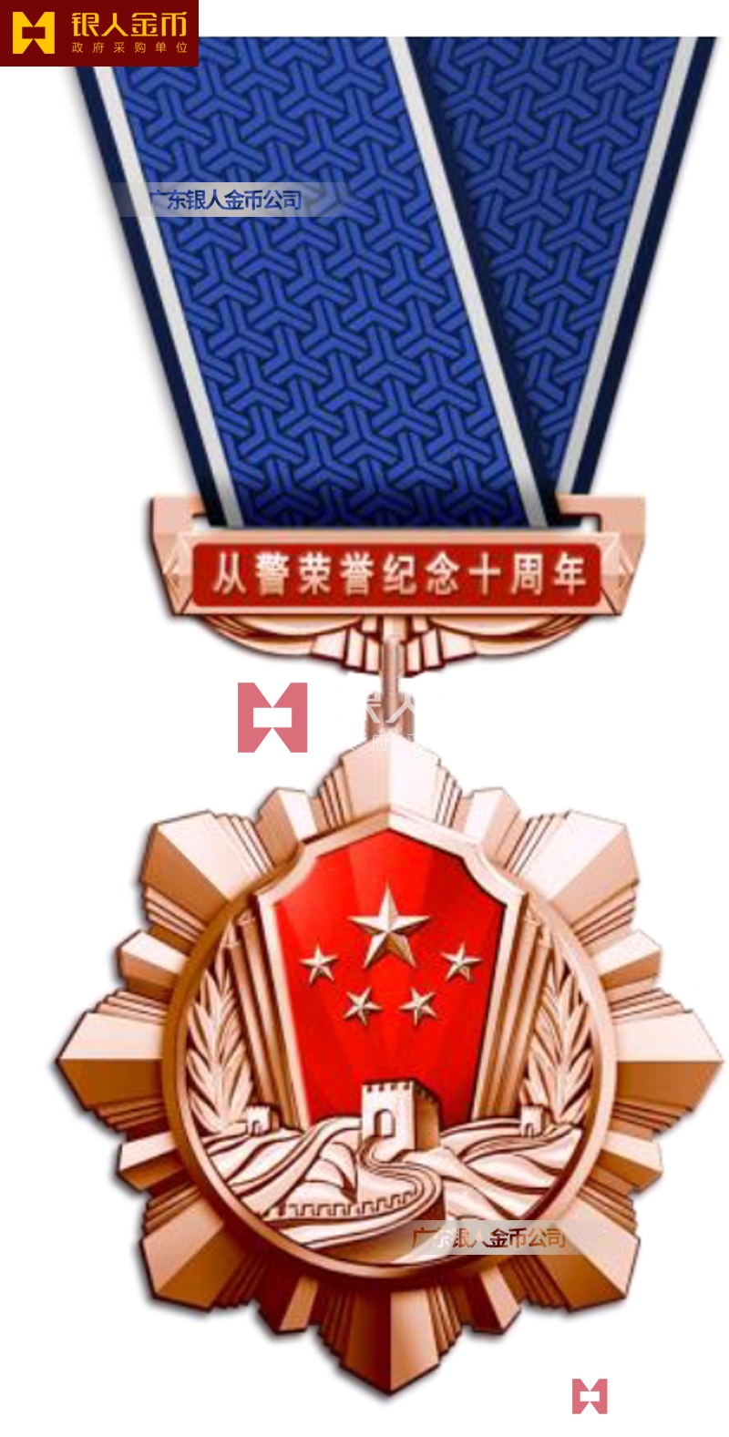 公安從警10年銅質紀念章獎章勛章、民警從警20年銀質紀念章紀念徽章證章、警察從警30年金質紀念章獎牌榮譽章胸章