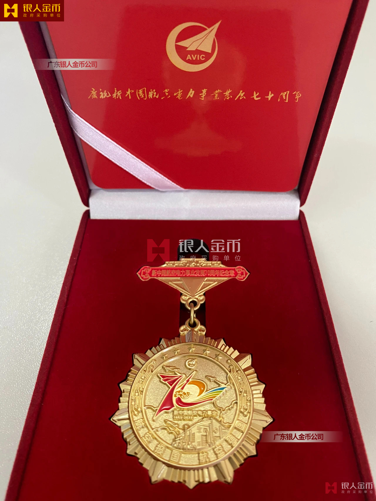 新中國(guó)航空電力事業(yè)發(fā)展70周年紀(jì)念章-航空?qǐng)?bào)國(guó)、航空強(qiáng)國(guó)中航工業(yè)紀(jì)念徽章獎(jiǎng)?wù)拢▓D)