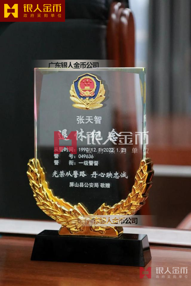 宜賓屏山縣公安局民警退休紀(jì)念牌和警察退休獎(jiǎng)牌公安民警退休紀(jì)念品(圖)