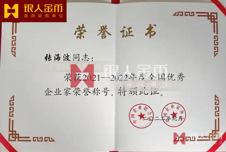 全國(guó)優(yōu)秀企業(yè)家獎(jiǎng)牌獎(jiǎng)杯獎(jiǎng)?wù)聞渍伦C書(圖)