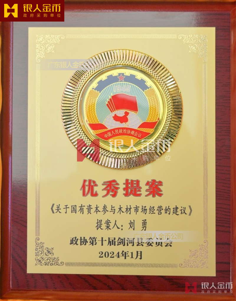 貴州省黔東南苗族侗族自治州政協(xié)優(yōu)秀政協(xié)委員優(yōu)秀提案獎(jiǎng)牌紀(jì)念牌牌匾證書(shū)(圖)