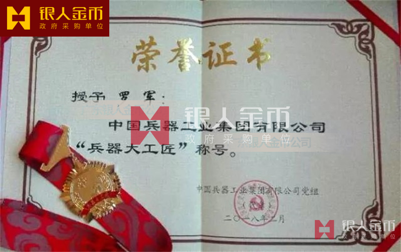 中國(guó)兵器工業(yè)集團(tuán)兵器大工匠獎(jiǎng)?wù)聞渍录o(jì)念章榮譽(yù)獎(jiǎng)?wù)聵s譽(yù)勛章獎(jiǎng)牌證書(shū)(圖)