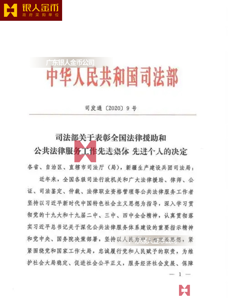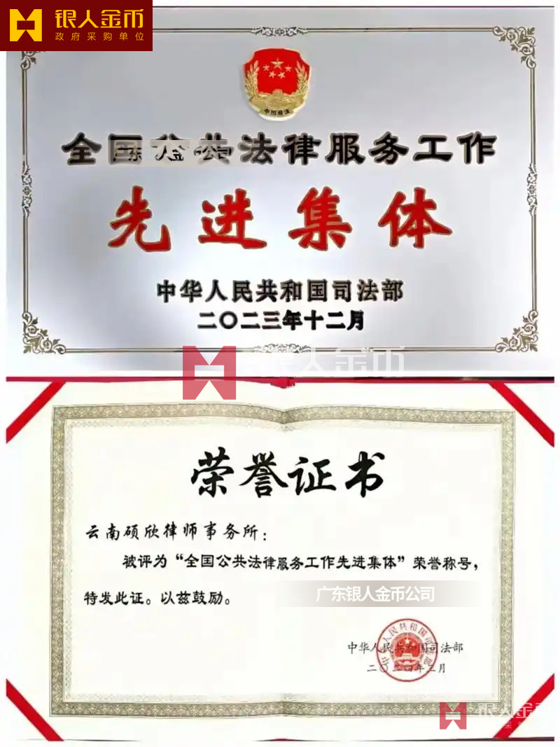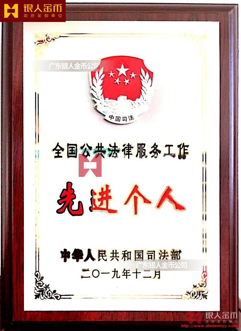 司法部全國公共法律服務工作先進個人和先進集體獎牌證書(圖)
