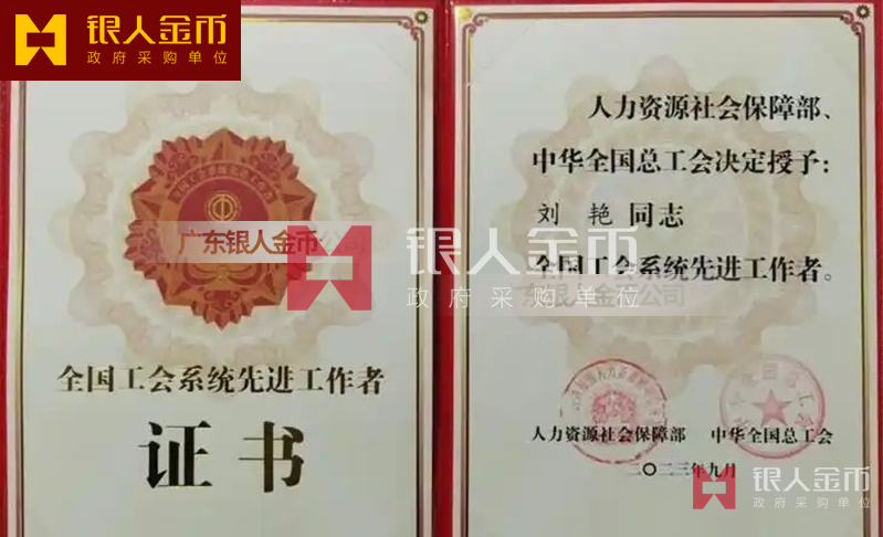 中華全國總工會全國工會系統(tǒng)先進集體獎牌證書和先進工作者全國優(yōu)秀工會工作者獎?wù)聞渍录o(jì)念章證書(圖)