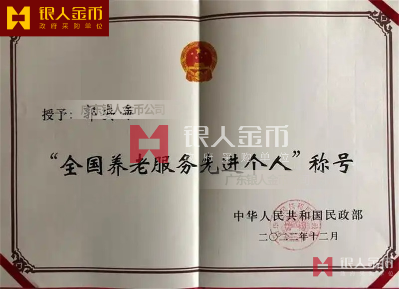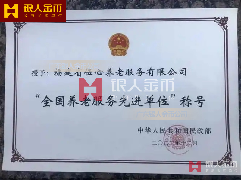 中華人民共和國民政部全國養(yǎng)老服務(wù)先進(jìn)單位獎牌證書和先進(jìn)個人獎?wù)聞渍录o(jì)念章證書(圖)