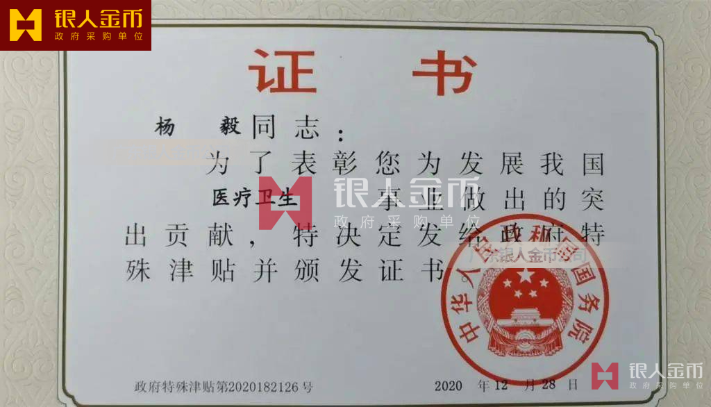 中華人民共和國(guó)國(guó)務(wù)院政府特殊津貼證書(shū)(圖)
