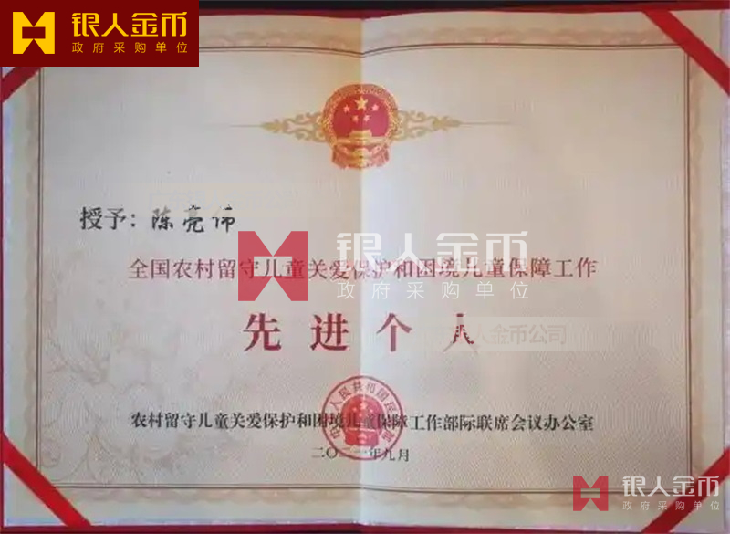 國(guó)務(wù)院全國(guó)農(nóng)村留守兒童關(guān)愛保護(hù)和困境兒童保障工作先進(jìn)集體獎(jiǎng)牌證書和先進(jìn)個(gè)人獎(jiǎng)?wù)录o(jì)念章勛章證書(圖)