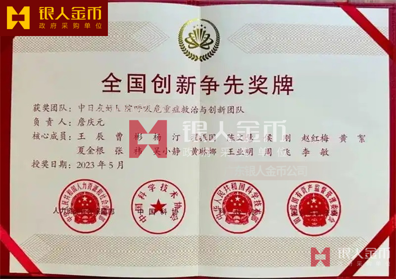 中華人民共和國科學(xué)技術(shù)部全國創(chuàng)新爭先獎牌證書(圖)