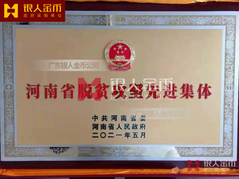 中共河南省委、河南省人民政府河南省脫貧攻堅(jiān)先進(jìn)集體獎牌證書和先進(jìn)個人獎?wù)伦C書(圖)