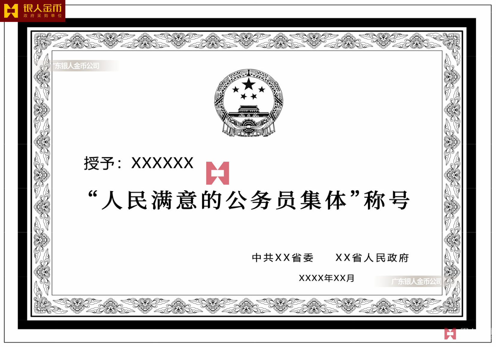 中組部標(biāo)準(zhǔn)公務(wù)員獎(jiǎng)勵(lì)證書、記功獎(jiǎng)?wù)隆ⅹ?jiǎng)牌制作式樣【國(guó)家公務(wù)員局】