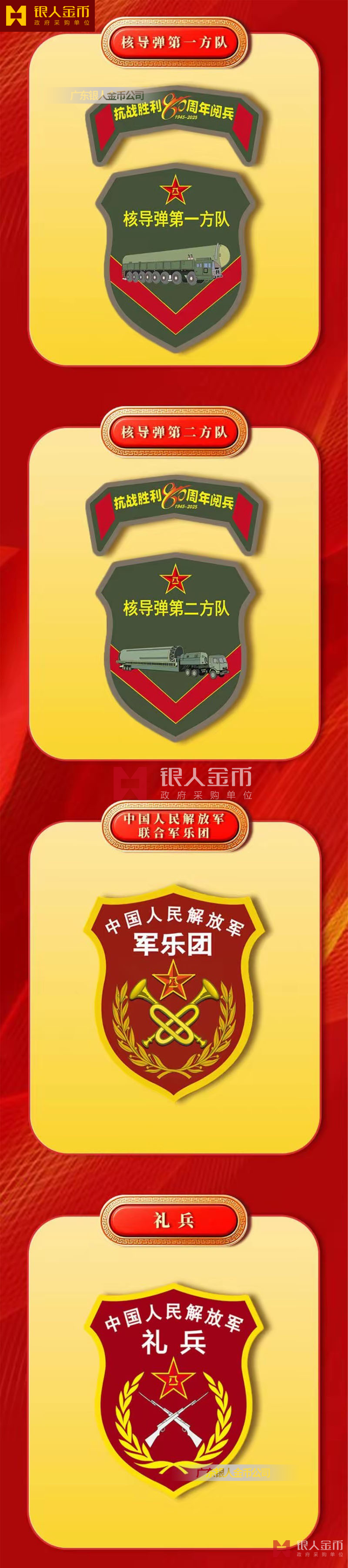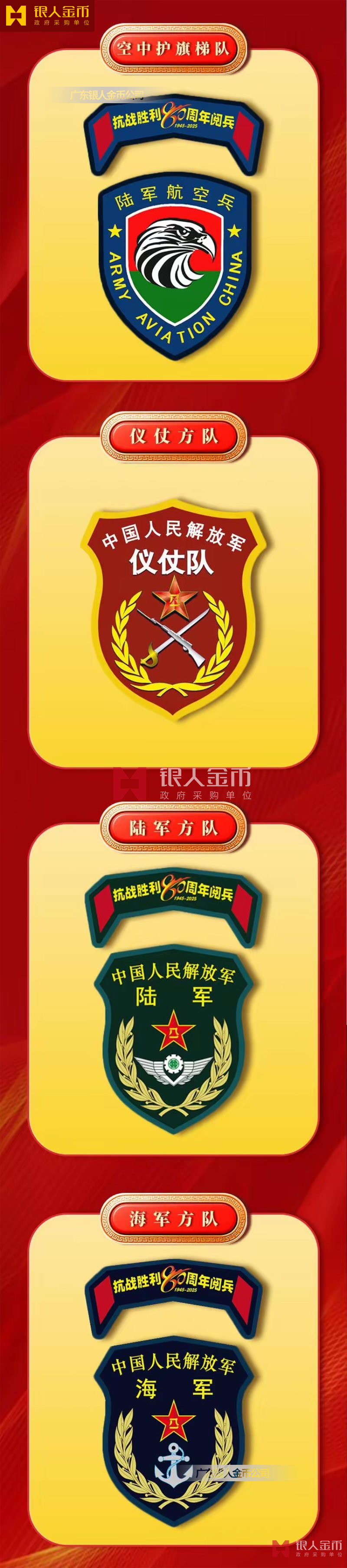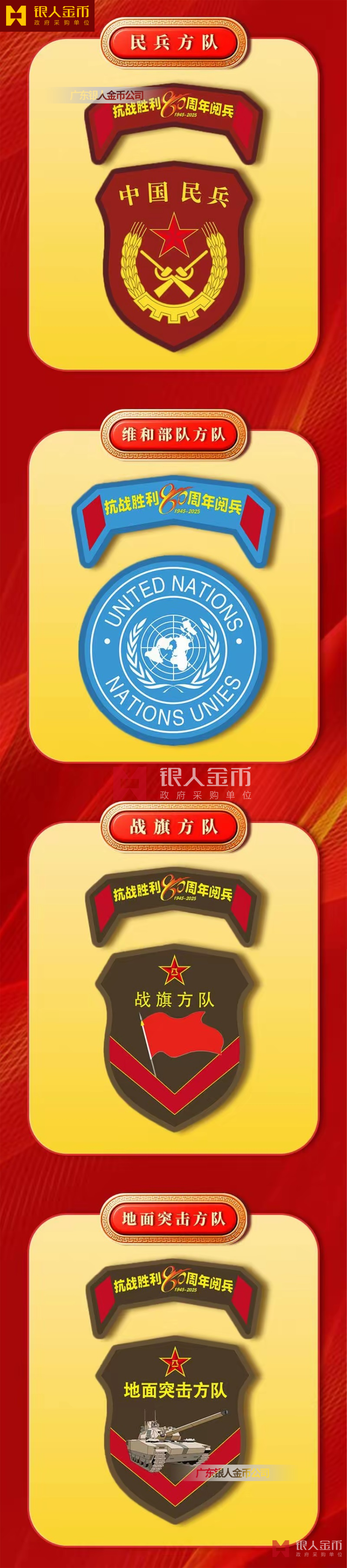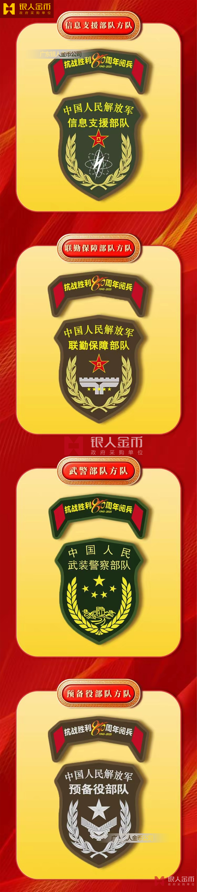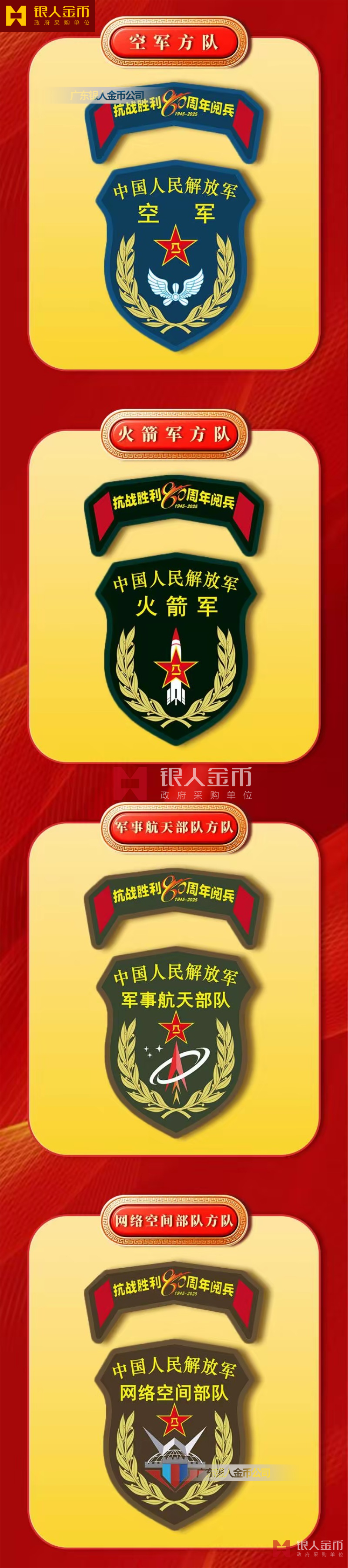 中央軍委海軍陸軍空軍武警部隊(duì)全軍各軍兵種中國(guó)人民解放軍九三閱兵臂章(圖)-【廣州徽章廠】