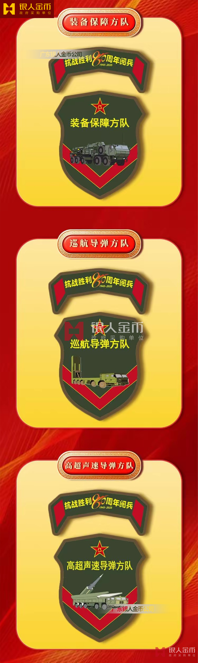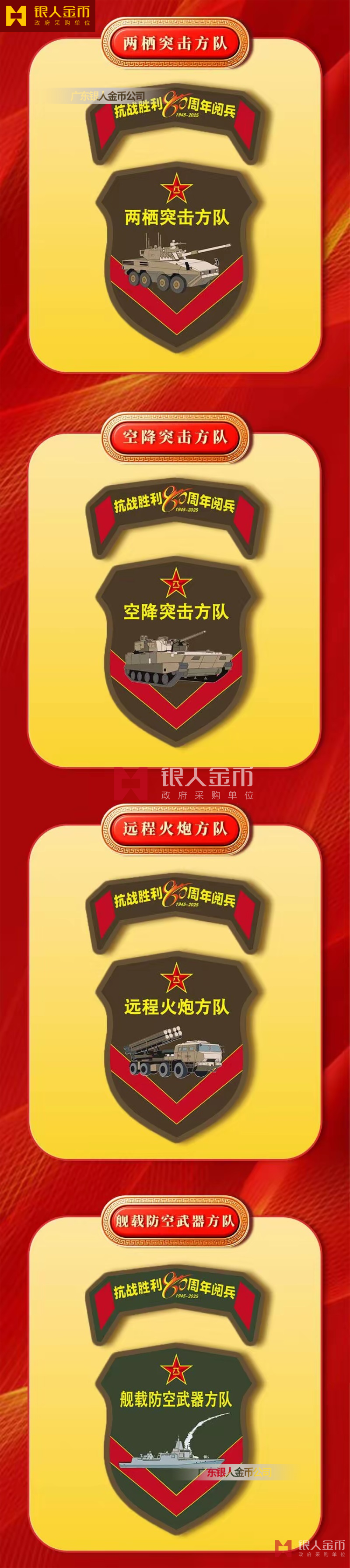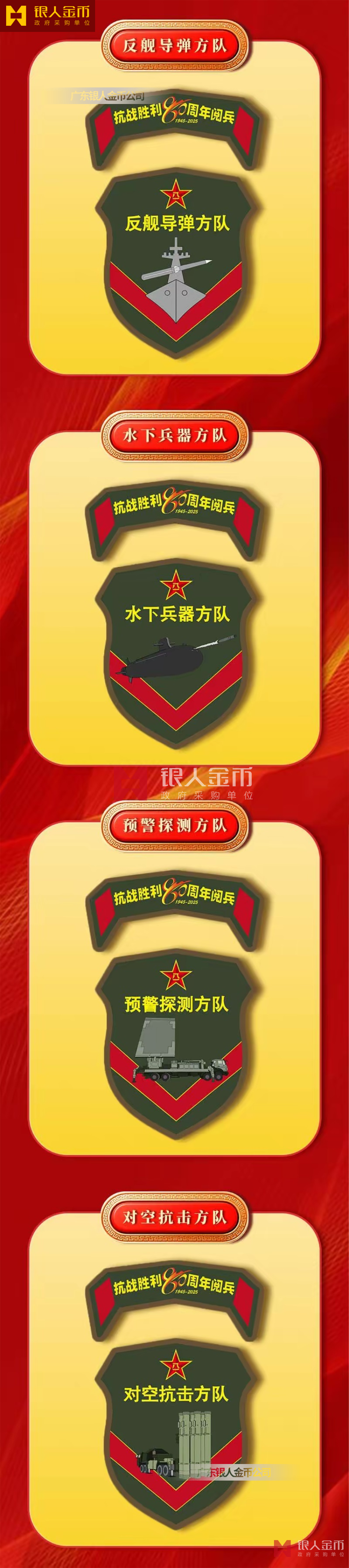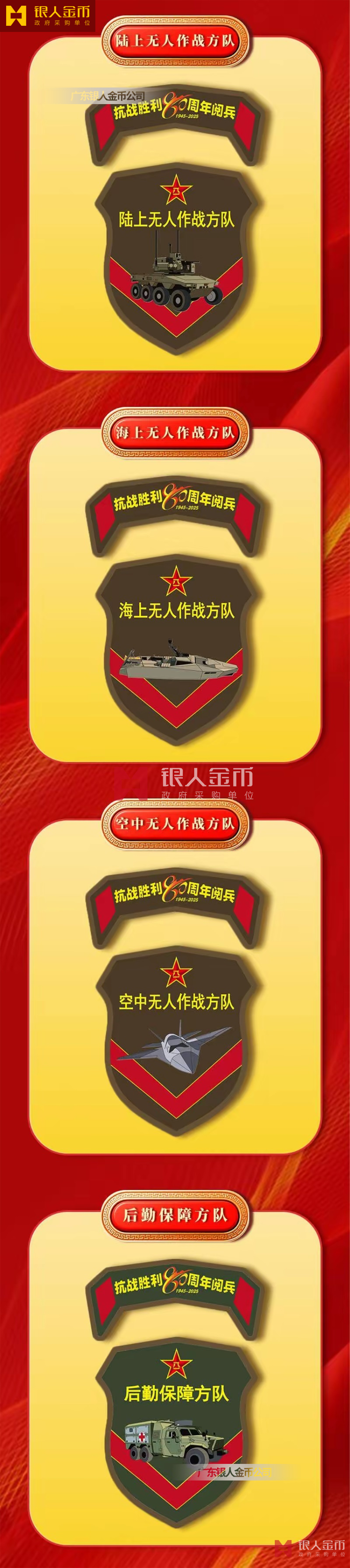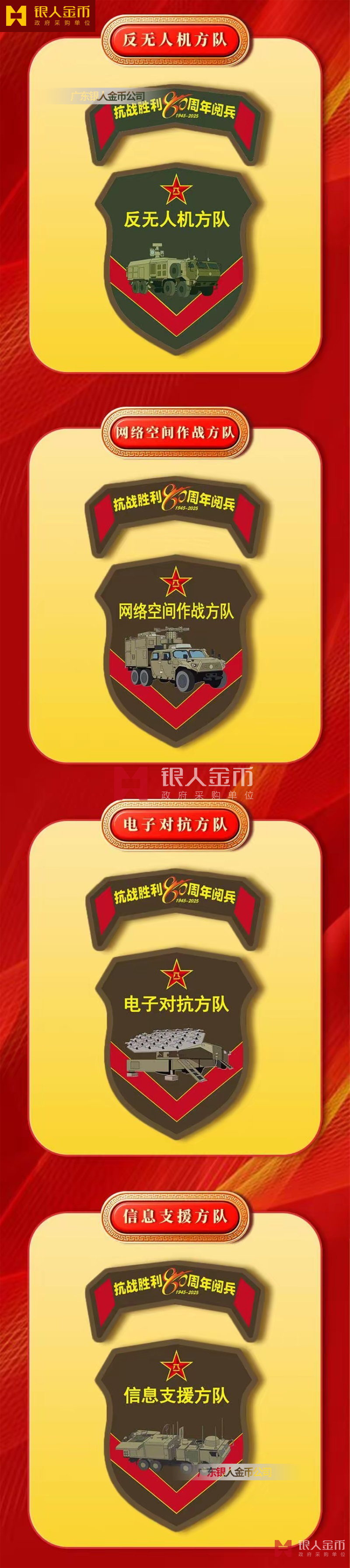 中央軍委海軍陸軍空軍武警部隊(duì)全軍各軍兵種中國(guó)人民解放軍九三閱兵臂章(圖)-【廣州徽章廠】