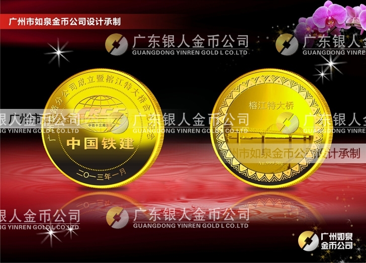 定制中國(guó)鐵建大橋合龍紀(jì)念金幣定制純金紀(jì)念幣