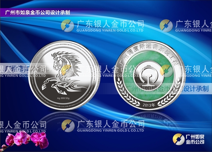 ?定制廣鐵集團制做銀紀念幣定制純銀鑲玉紀念幣