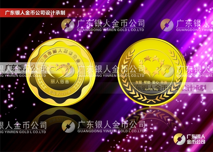 珠海麗人慈善會(huì)純金千足金黃金金牌定制、純金銀牌定制