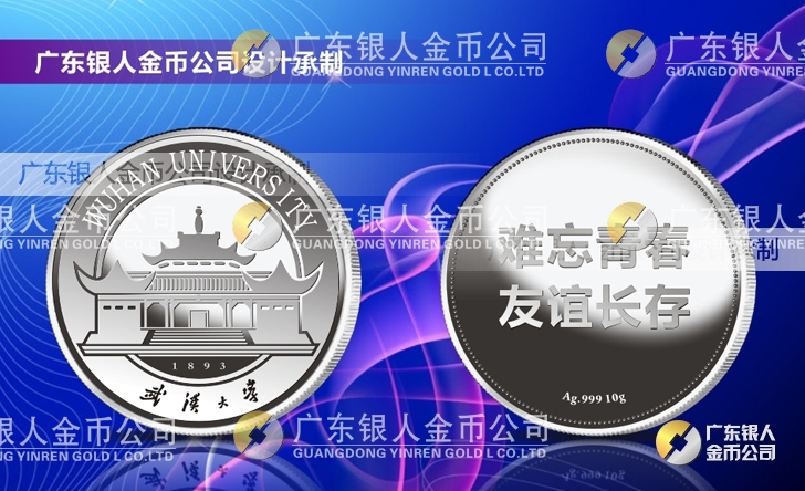 武漢大學同學畢業(yè)三十周年聚會留念慶?;顒蛹o念銀幣定做、純銀紀念幣定制