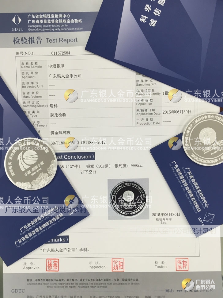 廣東銀人金幣公司承接客戶個(gè)性化定制的金銀幣、金銀章、金銀條、金銀牌、金銀盤均由國(guó)家質(zhì)監(jiān)部門、嚴(yán)格檢測(cè)、權(quán)威鑒定: